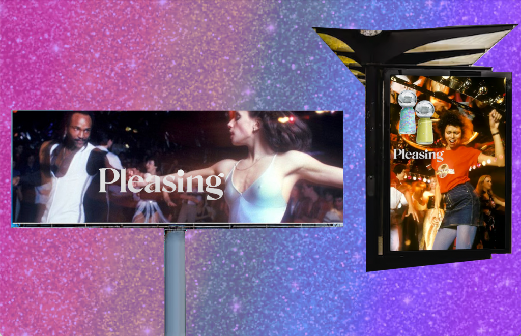 This billboard advertisement purposefully leaves out any obvious product placement because Pleasing is well-known to have more abstract forms of advertising in conjunction with its advertisements featuring products. This billboard with its logo and a new background image will allude to the new and upcoming Pleasing collection.